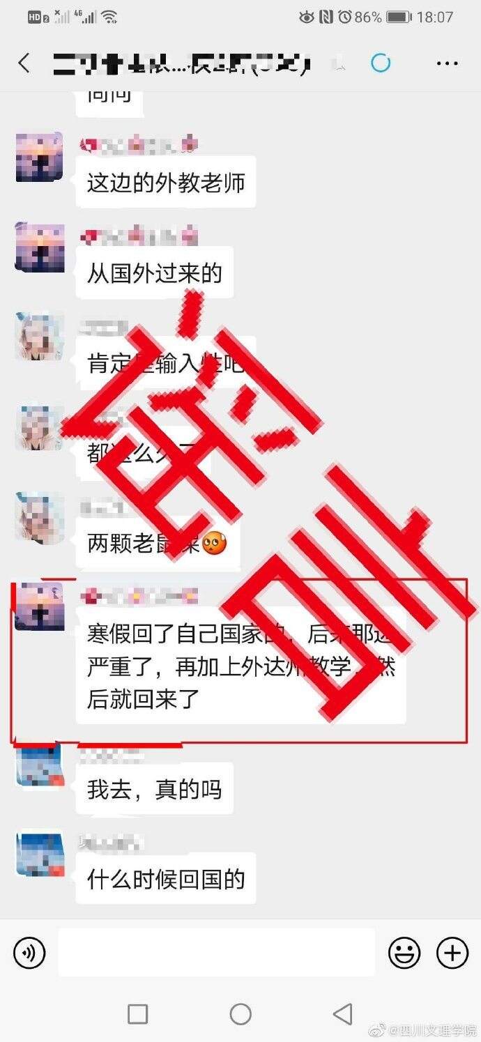 外教确诊新冠肺炎返回达州?四川文理学院辟谣:假的!