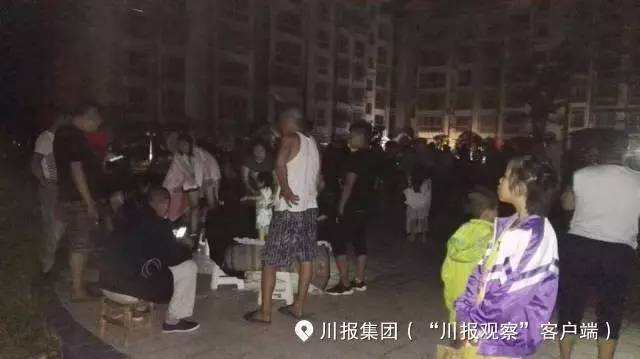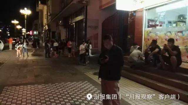 地震后的九寨沟县城情况,群众纷纷从家中走出,在露天避险。