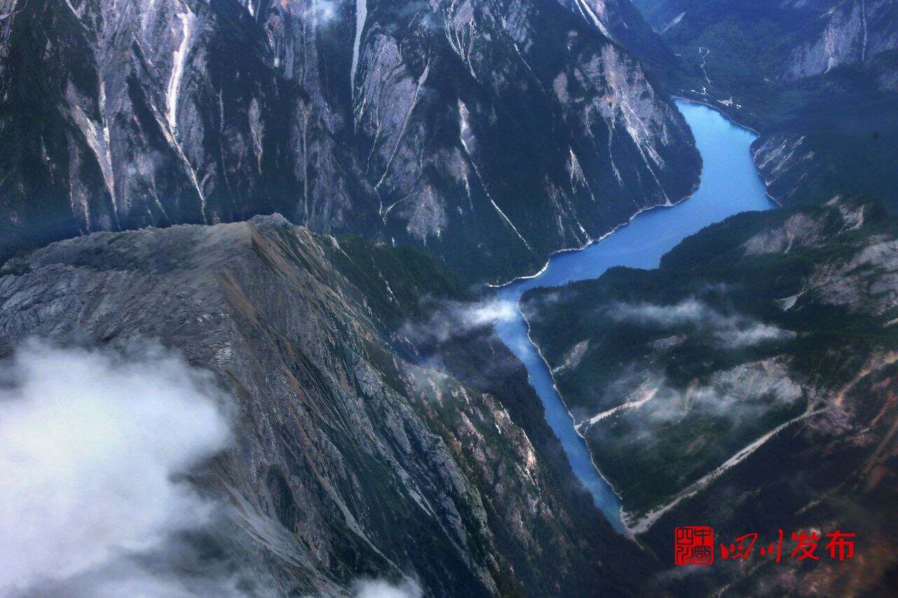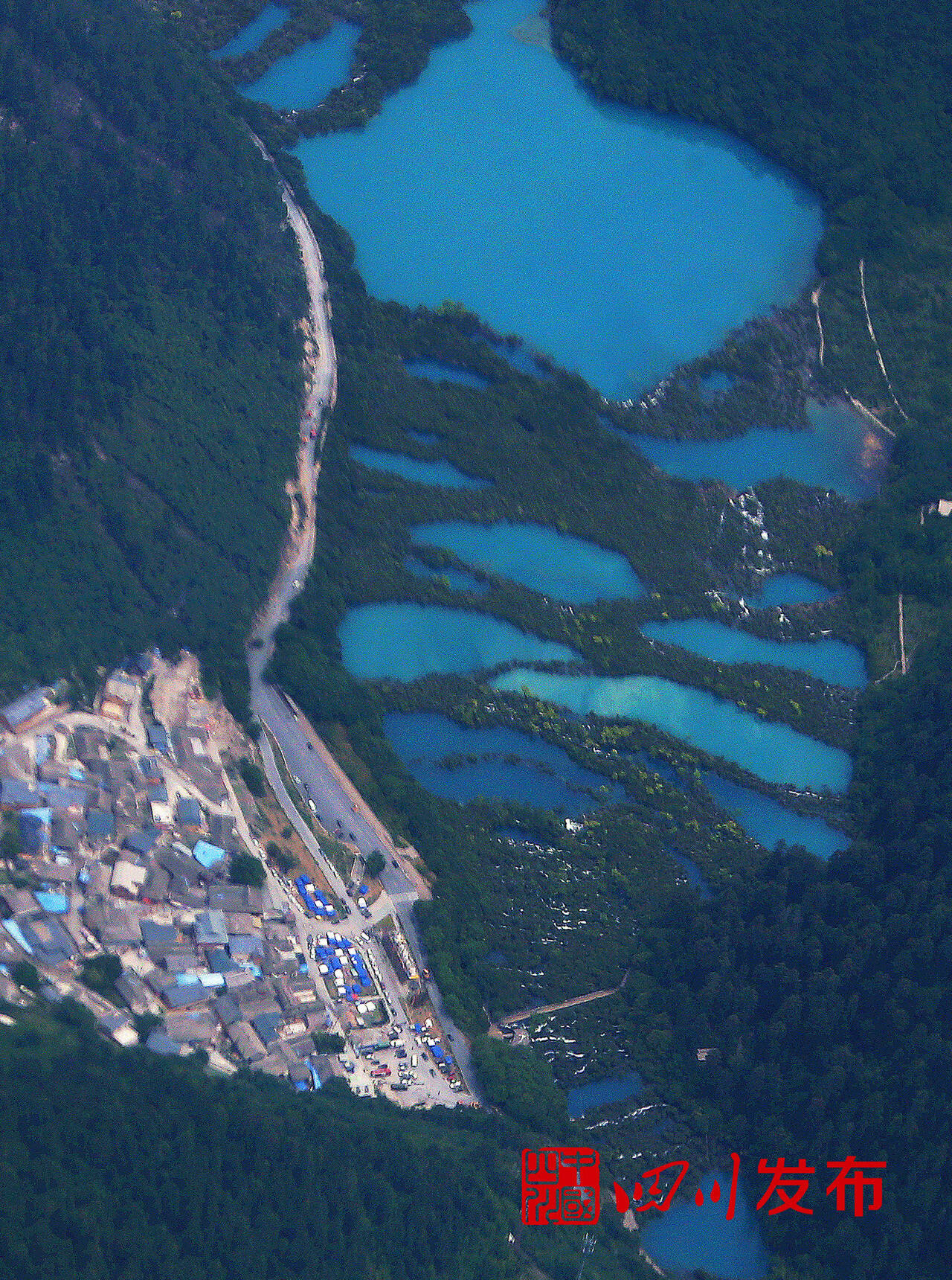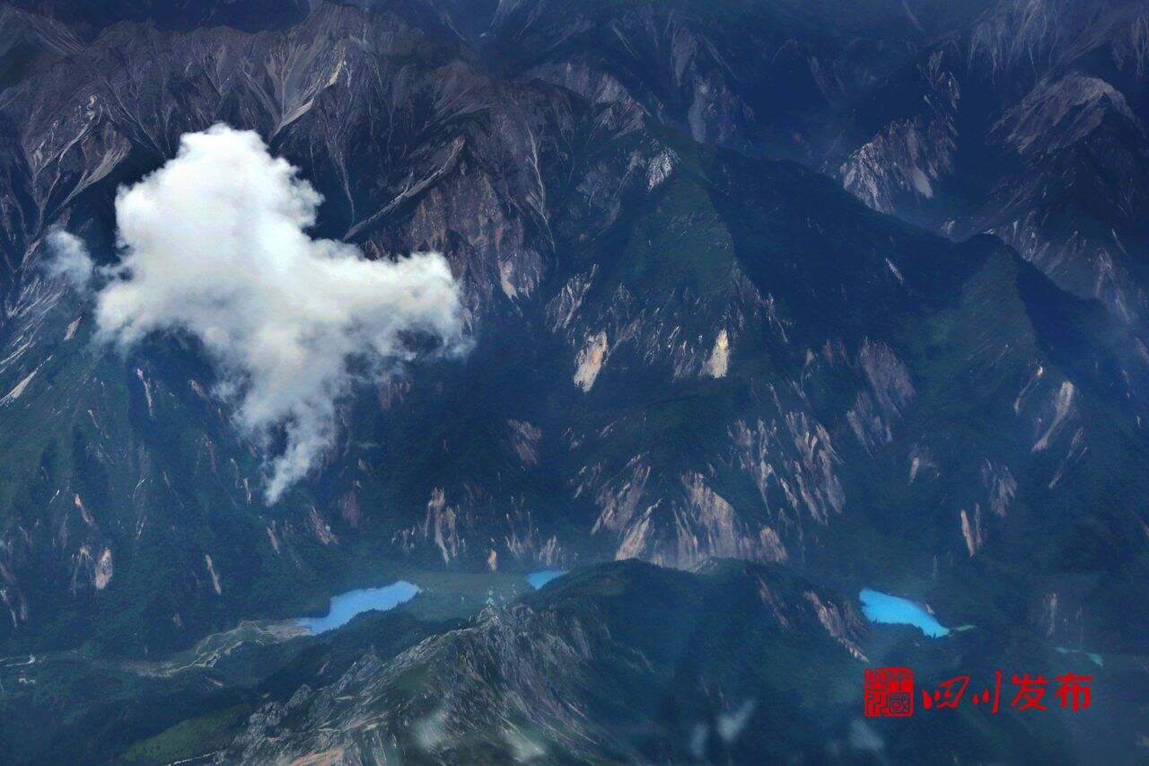 下面是西部战区空军航空兵某部运-9飞机今日下午再次飞临灾区上空进行侦察获得的影像资料。根据今日航空侦察所见,九寨沟山依然青,水依然蓝。