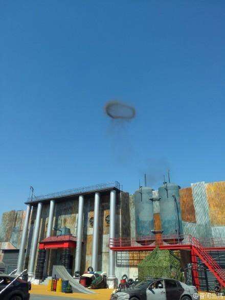 记者了解到,该网友的微博发出后,有多名网友评论表示目击过照片中的场景,地点就在金石滩隔壁的游乐场“发现王国”。随后,专注于为网友答疑解惑的微博认证账号“@博物杂志”也转发了这则消息,并作出澄清:金石滩边上有个游乐场,里面有个表演的机器,一表演就喷一个烟圈。“@博物杂志”还附上了一张游乐设施正在喷射烟圈的图片。