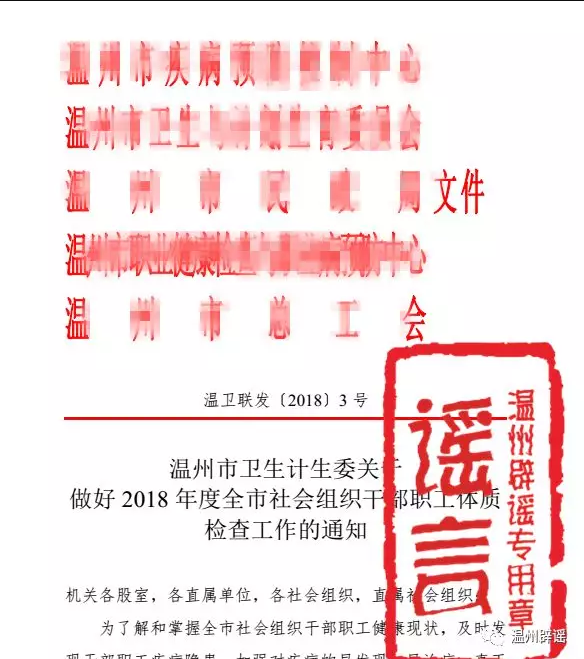 网传“温州市卫计委发文要求组织体检的通知”系谣言!千万别信