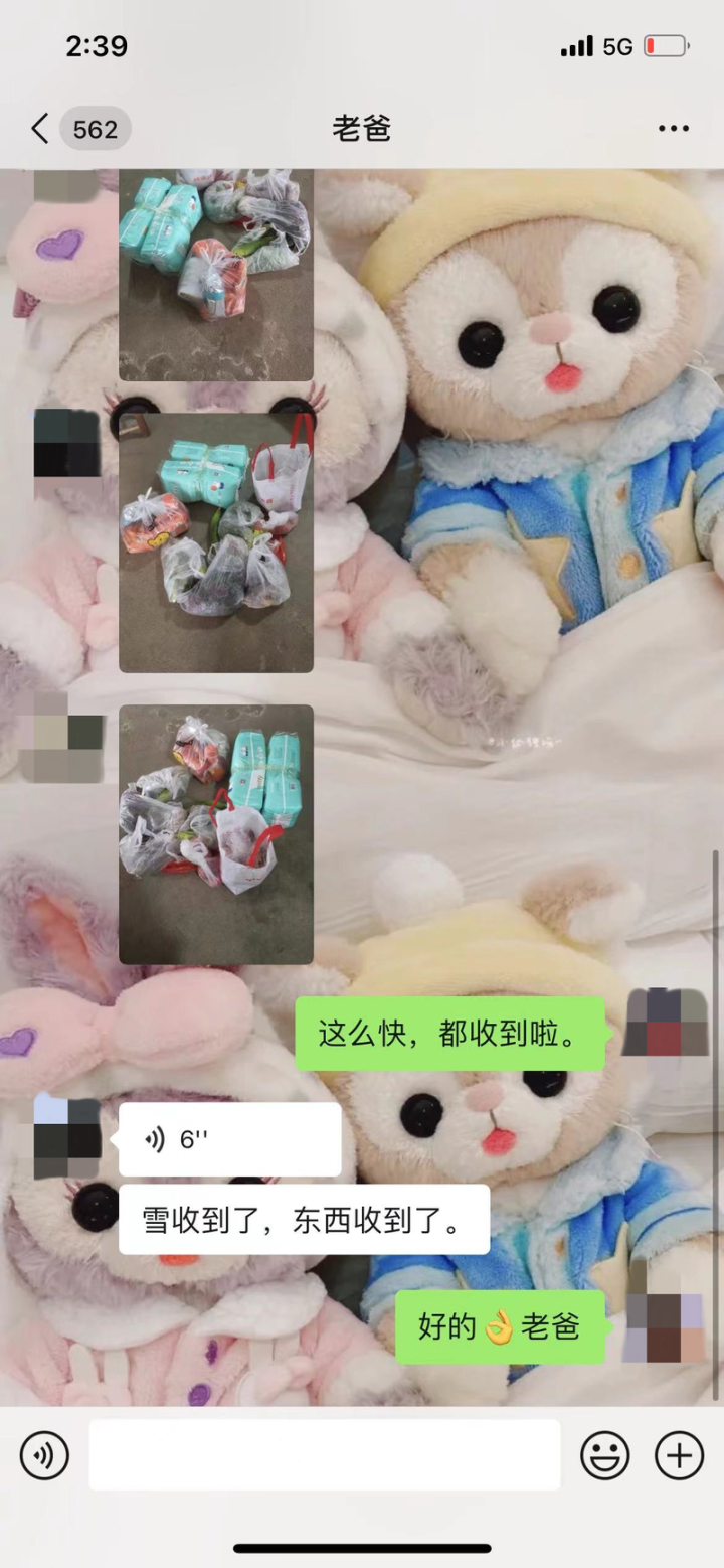 “雪,收到了,东西收到了。” 当天下午2时30分许,诸葛小雪接到了父亲发来的微信消息,称当地村干部将宝宝用品送上门了。“我替宝宝谢谢这么多叔叔阿姨,真没想到,有这么多人、这么多部门为了孩子一口奶粉在接力,我相信我们一定可以战胜疫情。”