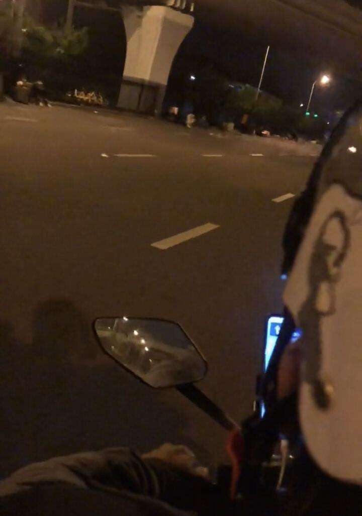 坐在电瓶车后座往虹桥赶路时,吴涛生曾拿出手机,拍了一段不到10秒钟的视频。画面其实很单调,夜晚空荡荡的马路,街边赶路的行人,风声,还有于韦那个占据了屏幕二分之一的白色头盔,上面画着黑猫警长。