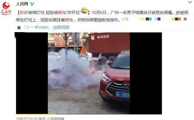 10月6日,广州一名男子结婚当日被朋友闹婚。他被捆绑在灯柱上,屁股后面挂着鞭炮,点燃后噼里啪啦地挨炸。围观者将视频发布到网上,引起大量转发。而在今年6月份,一条“疑似闹婚伴娘被袭胸猥亵”的视频在网上传播:陕西西安的一场婚礼上,伴郎胡某某和陈某某在参与婚庆活动途中,在婚车上对伴娘进行搂抱、摸胸等行为,持续大约进行3到5分钟,该视频在网上大量转发;视频中涉嫌猥亵的两名男子随后被西安警方查获,并受到处罚。
