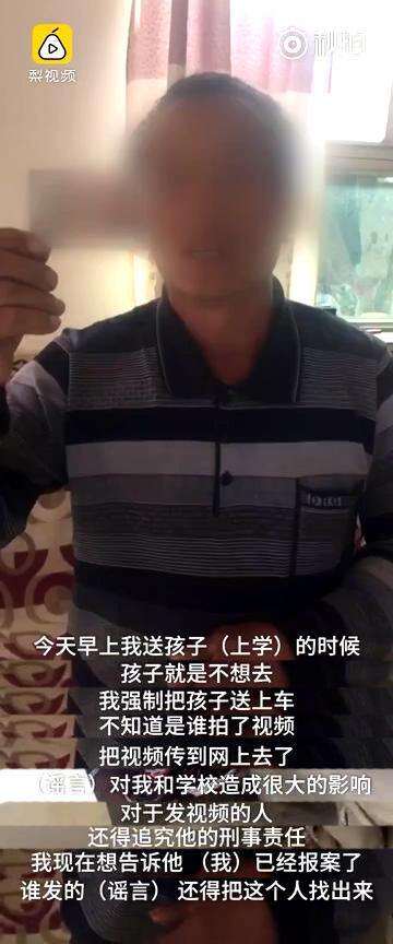 真实的情况并非如此。视频中的男子并非校车司机,而是那位哭闹孩子的父亲。那天早上,孩子不想去上学,他只得强制把孩子送上校车。这位老爸没想到,有人竟把他送孩子上车时和孩子哭闹的场景拍了下来,还传到网上,并杜撰出了“校车司机打孩子”的谣言,对他和学校都造成很大的压力。