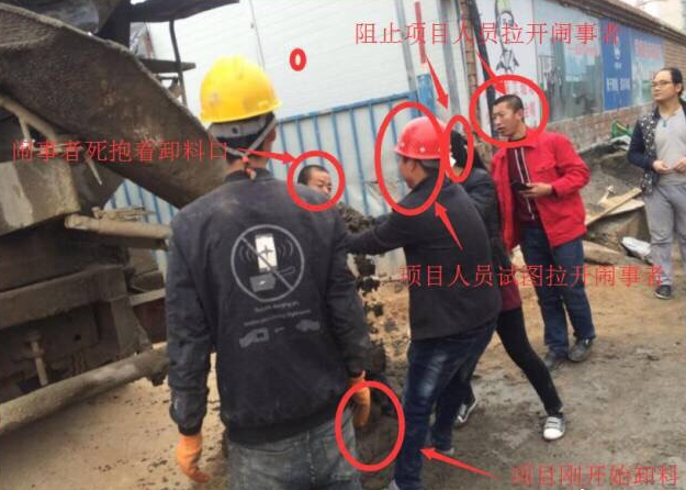 车主与修理工家属协商民事赔偿未果。2017年10月24日9时许,死者家属共计20余人,围堵中铁工地大门,阻挡项目施工。当时,施工现场一辆砂浆罐车等待了3个小时仍无法卸车,罐车内的砂浆已接近凝固,不得不卸料。死者家属汪某见项目现场人员开始卸料,立即抱住卸料口,任由砂浆往自己身上倾倒。现场管理人员及工人立即上前阻止并想方设法拉开汪某,汪某抱着卸料口不动。另一名死者家属拉住项目工人,不让其拉出抱住卸料口的汪某,其他死者家属拦住别的工人上前救助。