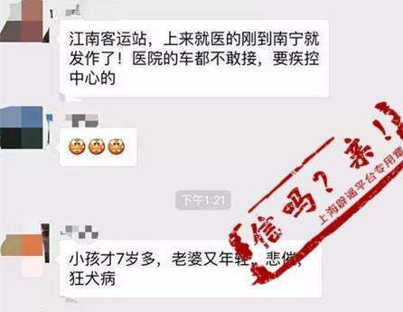 对此视频,网上众说纷纭,有“目击者”声称视频中的场景发生在南宁江南客运站附近,视频中的男子“来南宁就医时突发狂犬病,抱住男子的女子是他妻子,而旁边的孩子是他7岁的儿子”,甚至强调“医院的车都不敢接,要疾控中心的”……