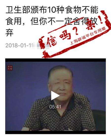 事实上,这些所谓“千万不能吃的食物”中的绝大部分,上海辟谣平台都曾作过专题辟谣。对于其他一些网传“不能吃的食物”,也有不少权威的专家学者进行过解释和澄清。近期,包括“@武汉食药监”“@科信食品与营养信息交流中心”等机构都对网传视频进行了辟谣,称视频内容错漏百出,而演讲者就是在“一本正经地胡说八道”。