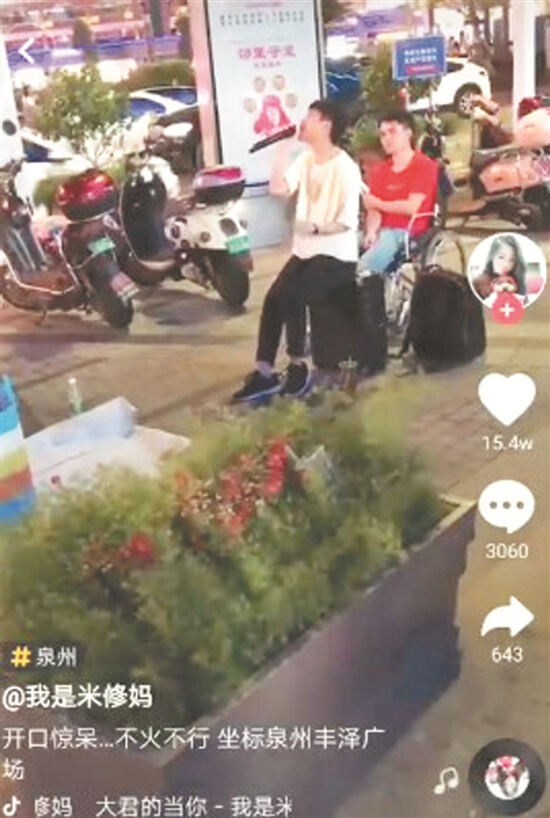 近日,在网上爆红的一款拍摄短视频的软件上出现了两名男子在泉州街头卖艺,有网友怀疑是一名较年长的男子控制了一名在唱歌的男子,胁迫他来卖艺,向警方求助。19日晚,泉州网警现场核实后进行辟谣。