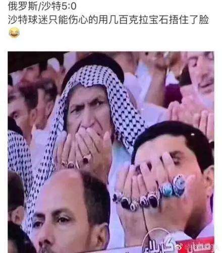 昨晚世界杯首战开幕,俄罗斯以5:0的比分战胜了沙特队。赛后,一张“沙特球迷失望掩面”的图片在社交网络上疯传,图片里的沙特“球迷”掩面,却不小心展示出了满手的土豪戒指。