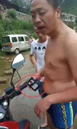 泳装男在拿到摩托男驾驶证后,走到了岸边,要求驾车男子将车骑到旁边作进一步处理。双方再次争论,男子一再质疑对方没穿制服问题。