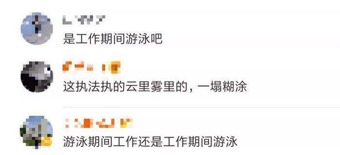 视频和照片被热传后,引发部分网友质疑,甚至有人认为未穿警服的民警是在“游泳”。