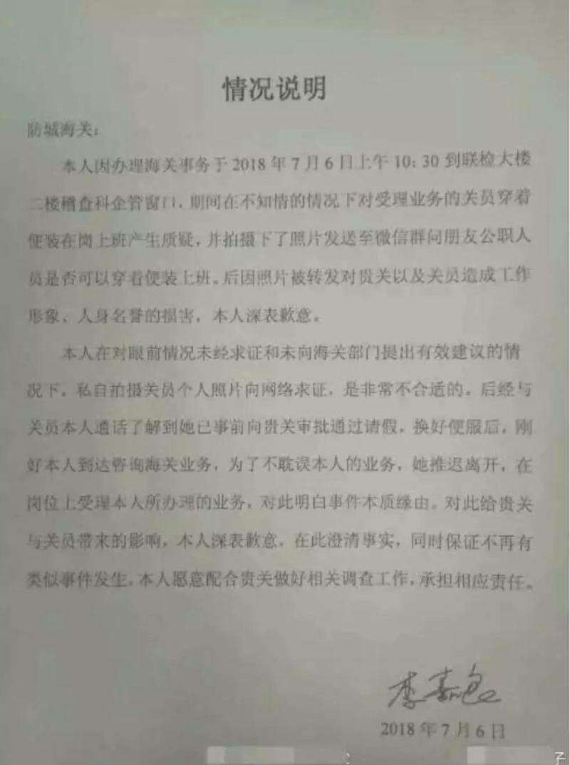 原来这名女性工作人员,当天已请假,准备离开时,恰逢有人前来办事。为了不耽误对方,她临时受理了业务。没想到,因着装问题被拍照晒到了网上……