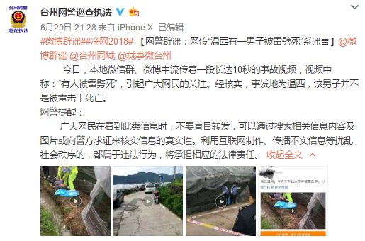 四、浙江 · 网传“温西有一男子被雷劈死”系谣言