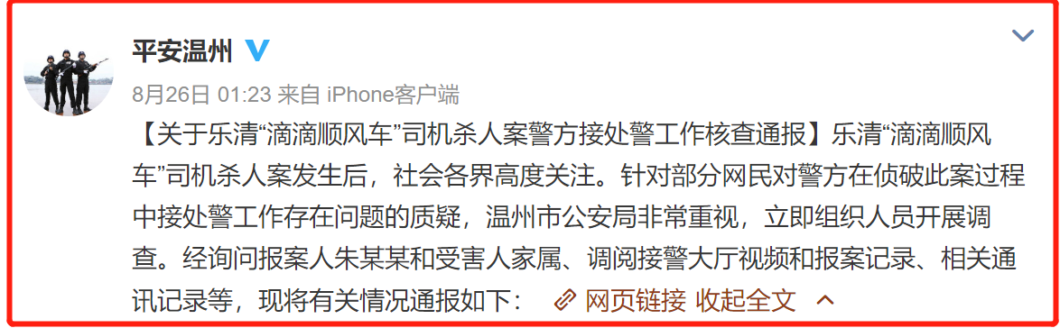 真相:昨天,温州市公安局正式对外发布《关于乐清“滴滴顺风车”司机杀人案警方接处警工作核查通报》,对网传说法进行了辟谣——