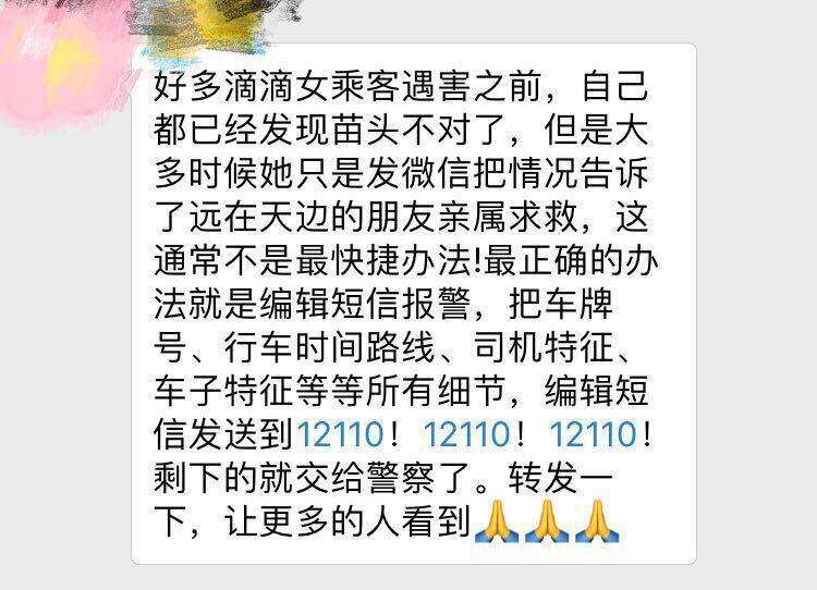 “滴滴顺风车”司机杀人案中的受害者其实在乘车过程中,已发现司机异样。对此,有不少微博提醒,当觉察到事情不对时,最好第一时间就报警,如果怕犯罪分子恼羞成怒,甚至可以通过12110短信报警。短信还可以报警?这不是谣传,是真的。