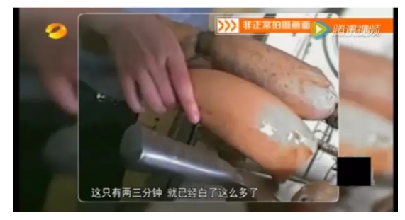 解放日报·上观新闻记者搜索发现,网传视频截取自湖南卫视播出的一档新闻节目。节目里,湖南卫视记者使用非正常拍摄手段,揭发了部分使用工业级柠檬酸来浸泡莲藕的商家。节目的主旨是要打击这类不法商家。但是,网上最近流传的这段视频发布者偷换概念,把矛头对准了柠檬酸,才出现了近日在网上流传的“柠檬酸致癌”一说。