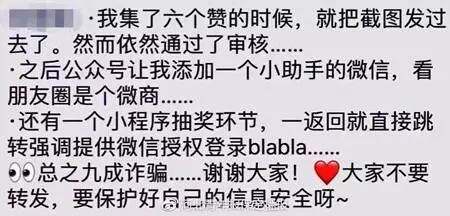 1.对于转发集赞即赠奖品以及抽奖中奖类的推文,要仔细核实公众号的官方性与历史信息,当无法确定信息真假时,可询问参加过的人员。