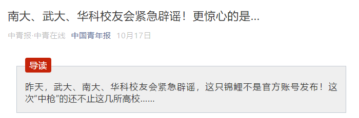 值得注意的是,此类针对高校学生的虚假营销推广活动并非首次了,还记得之前疯传的高校锦鲤吗?