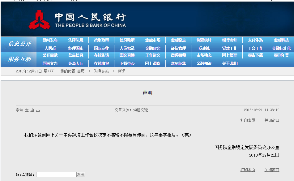 我们注意到网上关于中央经济工作会议决定不减税不降费等传闻,这与事实相反。