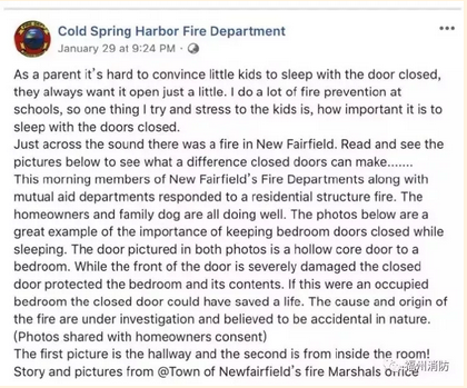 一位纽约的消防员在社交网络上科普称,“晚上睡觉,怕黑的人可能总会习惯将房门留一条小缝。有些老年人怕憋闷和封闭,也会习惯大敞着门,但关上卧室门睡觉更重要”。
