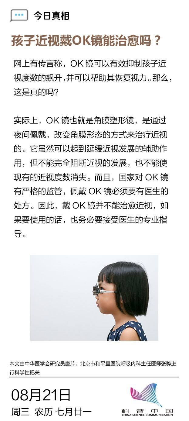孩子近视戴OK镜能治愈吗?
