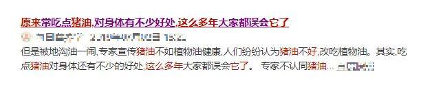 那小小的猪油竟真的能解毒?吃猪油能抗癌、治心脏病?今天,这事必须说清楚。