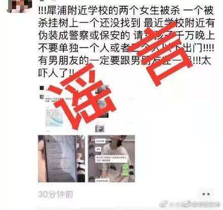 谣言:“附近学校有两个女生被害......学校附近有伪装成警察或是保安的,女孩子别单独出门......”