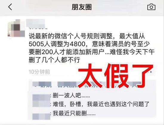 近日有有消息称,微信个人号规则调整,最大值从5005人调整为4800。明眼人一看就是假消息,不过还是在网上引起了很大的影响,遂,腾讯对此消息进行了回应。