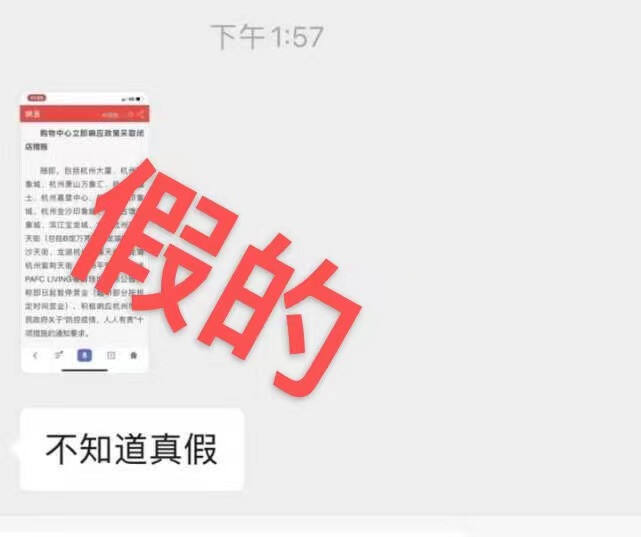 浙江辟谣平台据天目新闻、杭州网消息 4月12日,不少人发现微信群里流传一张截图,截图内容显示,购物中心立即响应政策采取闭店措施,包括杭州大厦、杭州万象城、杭州萧山万象汇、杭州来福士、杭州嘉里中心、杭州西溪印象城等多家商场均发布公告,称即日起暂停营业。