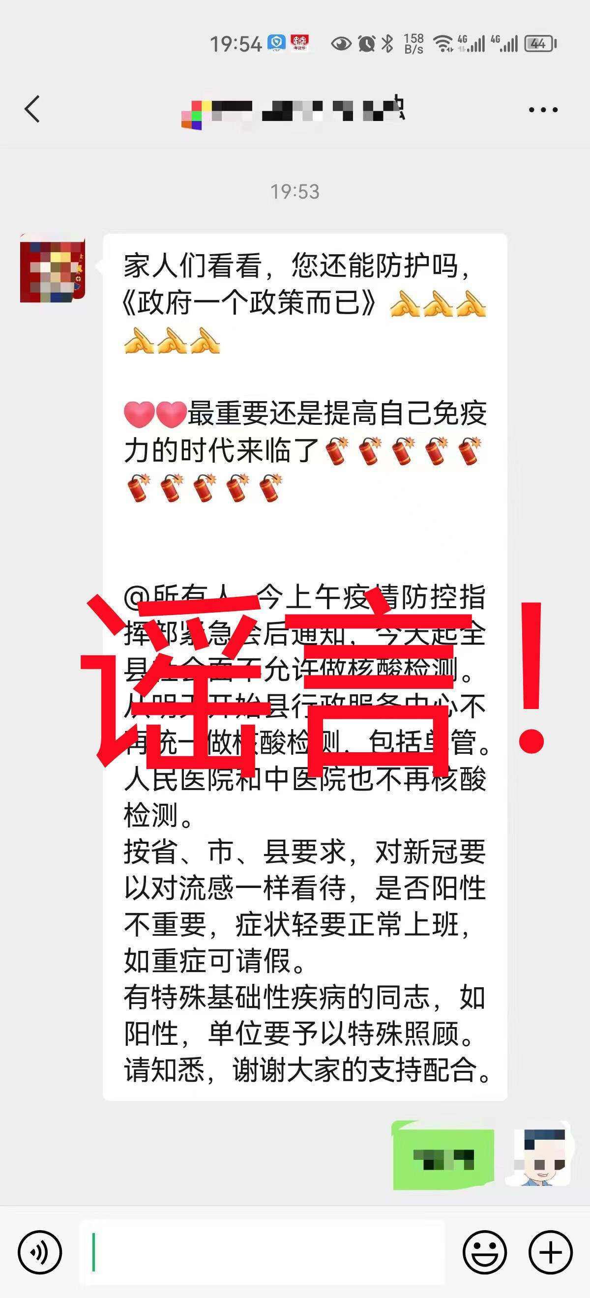 12月22日,记者向浦江县新冠疫情防控指挥部核实后,得知网传“全县社会面不允许做核酸(包括单管)”系谣言,请广大市民切勿听信,更不要继续传播。