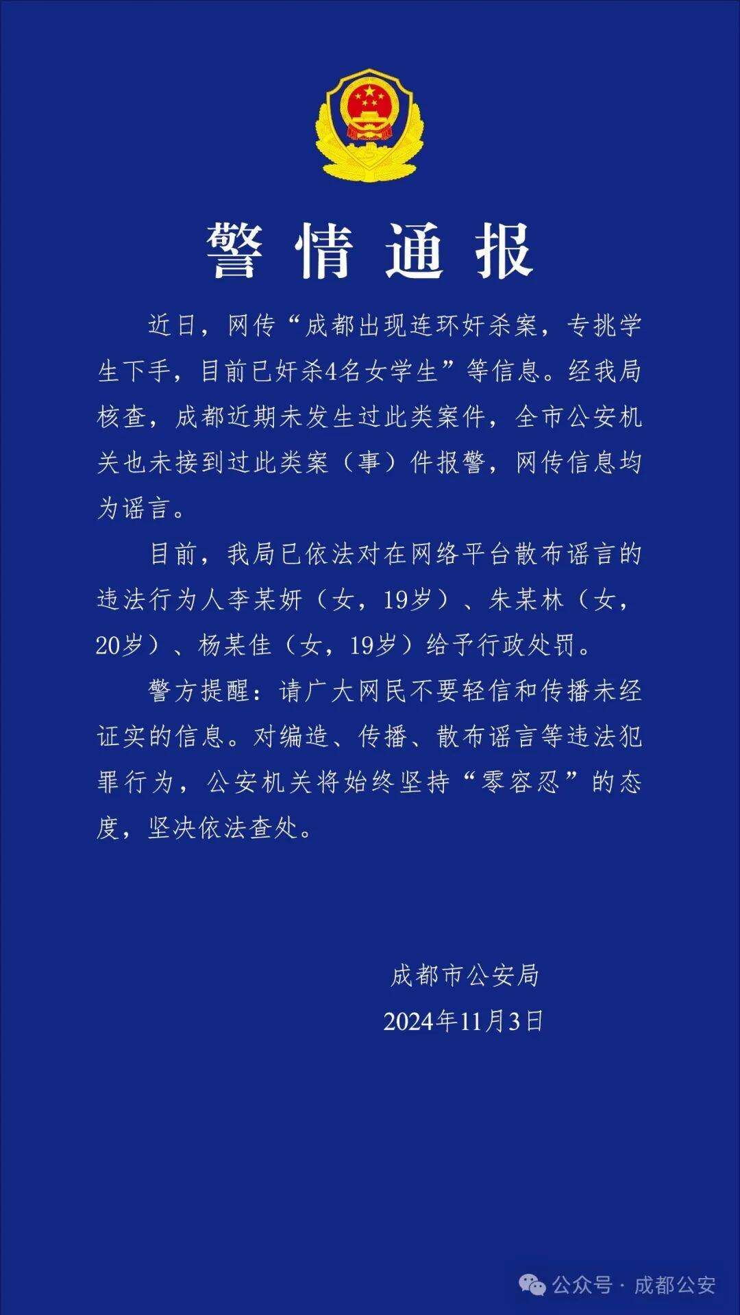 成都出现连环奸杀案?警方:谣言,3人被处罚