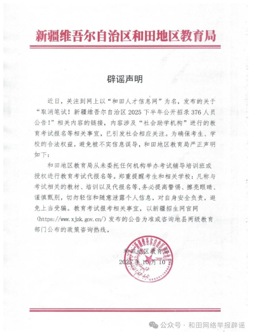 新疆和田授权机构开展教育考试培训与代报名?官方回应