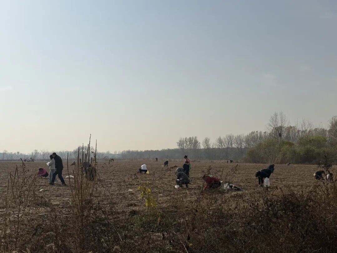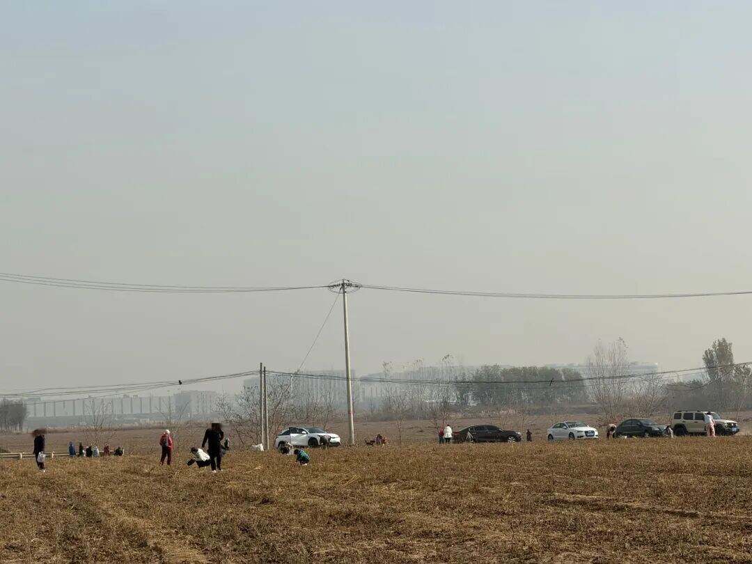 记者在大兴现场探访发现,这三处地点均为收割完毕的田地。第一处是萝卜地,但现场光秃秃已没有任何农作物;第二处是红薯地,聚集着不少拿着工具的大人孩子,因可挖的红薯所剩无几,大家纷纷驾车离开,寻找下一处“打野点”;第三处是黄豆地,有数十人正弯腰忙着捡地里遗留的黄豆。
