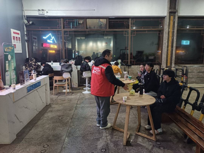 据介绍,近年来,大量登山者来到峨眉山,挑战登顶。大多数游客抵达山顶的时候已经天黑了,通常会选择在山上短暂休息等候日出。“他们聚集在酒店大堂,是因为景区免费开放金顶大酒店晶冰乐餐厅供游客临时休憩,该区域除了提供暖气,还有热水等。”