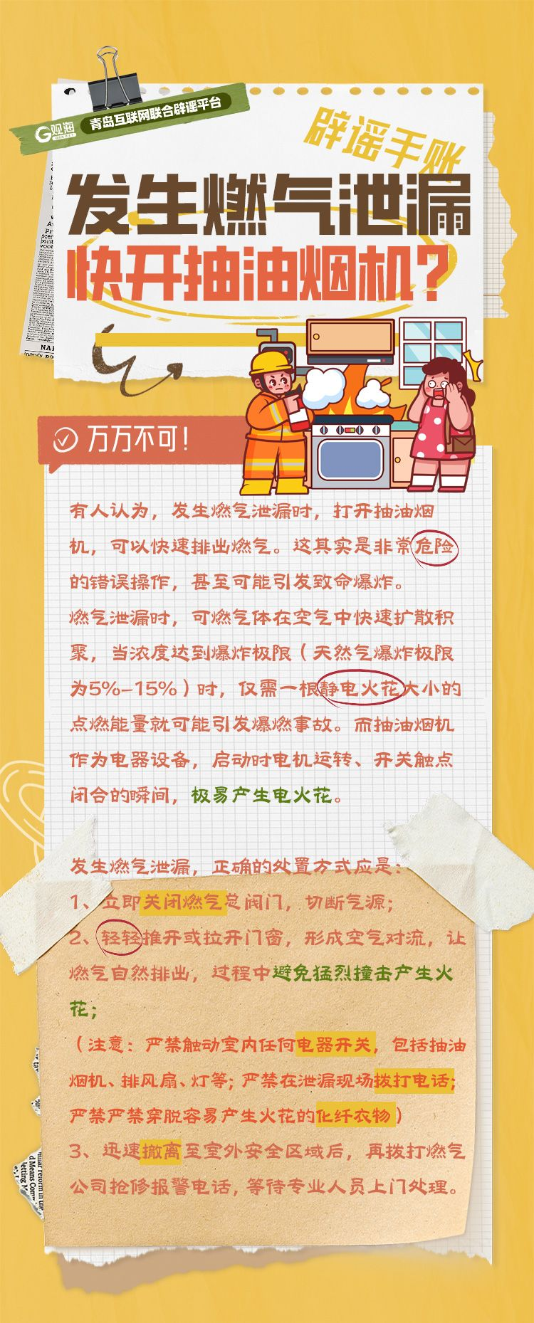 发生燃气泄漏,快开抽油烟机?