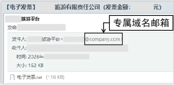 ——标题引诱+紧迫感逼单。岁末年初报销忙、账务急,境外攻击者抓住结算封账的时间点,伪装成电信运营商、电商平台或旅游平台客服,以“收件人姓名+电子发票”为主题构造钓鱼邮件。其中邮件正文中还会特别强调“逾期作废”“发票有误需重开”等字样制造紧迫感,降低警惕性,毕竟在不少人的潜意识里“一张发票能有多大危害”?但真正的陷阱就隐藏在附件或链接中,看似是一份普通的发票文件,实则是境外黑客组织精心伪装的木马程序。
