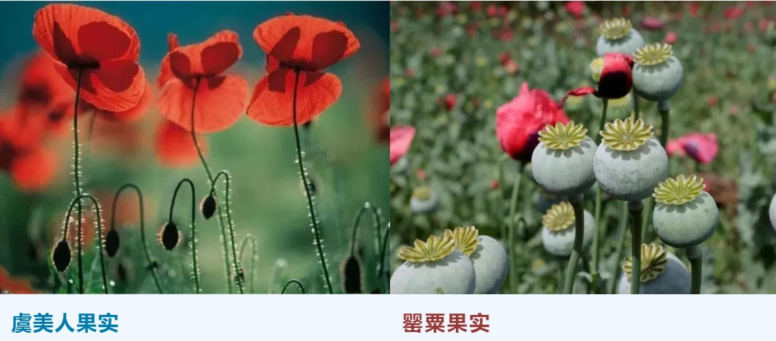 一看植株:罂粟茎、叶一般无毛;而虞美人和东方罂粟的茎、叶均有毛。二看果实:虞美人的果实相对较小,直径大概只有一厘米,表面毛茸茸;罂粟的果实相对较大,表面很光滑。