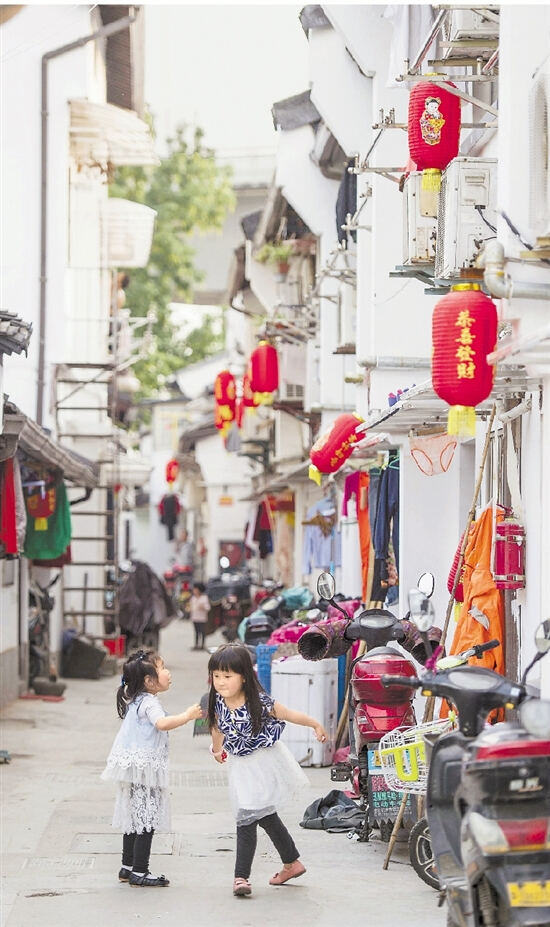 改造后,孩子们在馒头山社区宁静的里弄里嬉戏玩耍。