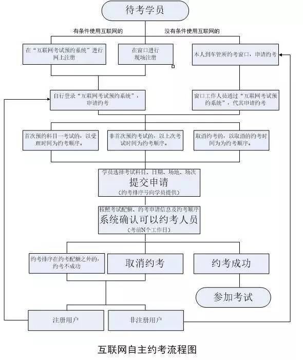 3.考生按照车管所已公布的考试预约计划,可以通过互联网、手机APP(交管12123)、车管窗口等方式,自主选择考试时间、地点预约考试。