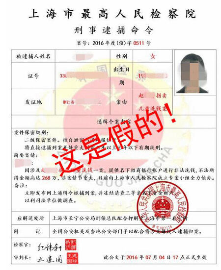 骗子先期通过各种渠道掌握了受害人的真实信息,再将真实信息填到所谓的“逮捕令”模板中,受害人看到了发现“逮捕令”上的信息和自己无误,就很自然而然的相信了电话那头真的是“警官”、“检察官”、“检察长”在和自己通话,导致最后落入到骗子的圈套了。