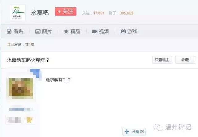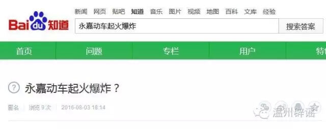浙江辟谣网8月4日讯 8月4日,有网友通过温州辟谣举报平台向辟谣君求证“网传永嘉动车起火爆炸”信息的真伪。