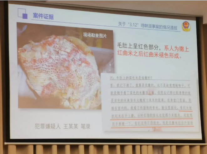 发布会上,成都市公安局相关负责人介绍,相关部门在调看厨房内监控视频后,发现有人疑似制作虚假食材图片,与网上炒作的图片相似,温江区公安分局已依法立案侦查。