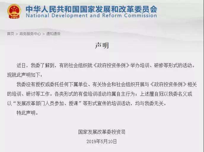 国家发改委辟谣:未授权任何单位组织开展《政府投资条例》相关培训