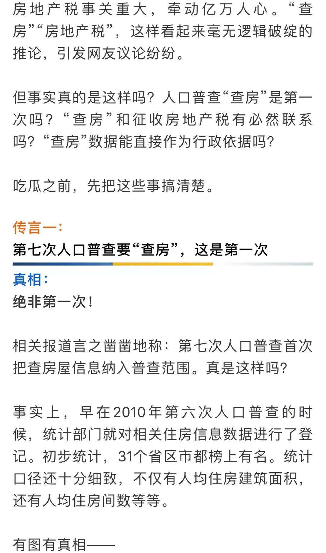 第七次人口普查将"查房" N个房产税传言你信吗?
