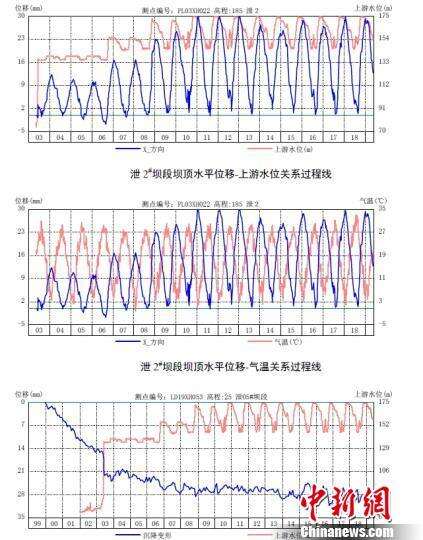 三峡枢纽关键坝段位移与沉降过程线。三峡集团提供