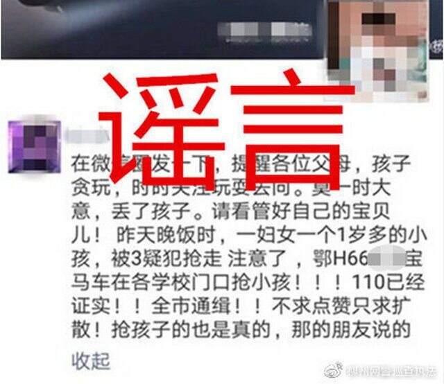 浙江辟谣网据互联网联合辟谣平台消息:近日,一则“全城通缉!鄂H668**宝马车在学校门口抢小孩”的信息在柳州市部分网民微信朋友圈中传播。经柳州网警核实,未发现“鄂H668**”车牌的车辆进入柳州市。公安机关暂未发布过“110通缉”等官方信息,也未接到“鄂H668**宝马车在学校门口抢小孩”的相关警情。网传信息为谣言,请各位家长不必恐慌。