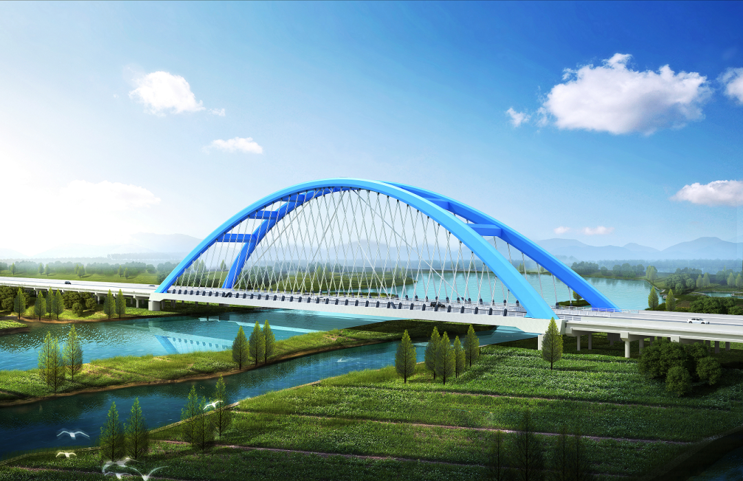 此次改建的104国道绍兴东湖至蒿坝段(越城区段)批复工期为 36 个月,全长19.3公里。改建后新线路起于104 国道与二环北路共线的会龙桥,终于大凌溇东侧与上虞交界处,全线按一级公路标准设计。因当地水网发达,共有桥梁27座,特大桥5座,其中采用单跨下承式拱桥结构的萧曹运河桥主跨跨径更是达到258米。