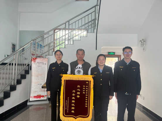 近日,开化县市场监管局迎来了一件温馨而庄重的事件:一家当地知名企业专程前来,送上了一面绣有“热心指导,为企业排忧解难”的锦旗,以此表达对工作人员长期以来为企业提供优质服务与帮助的诚挚感谢。