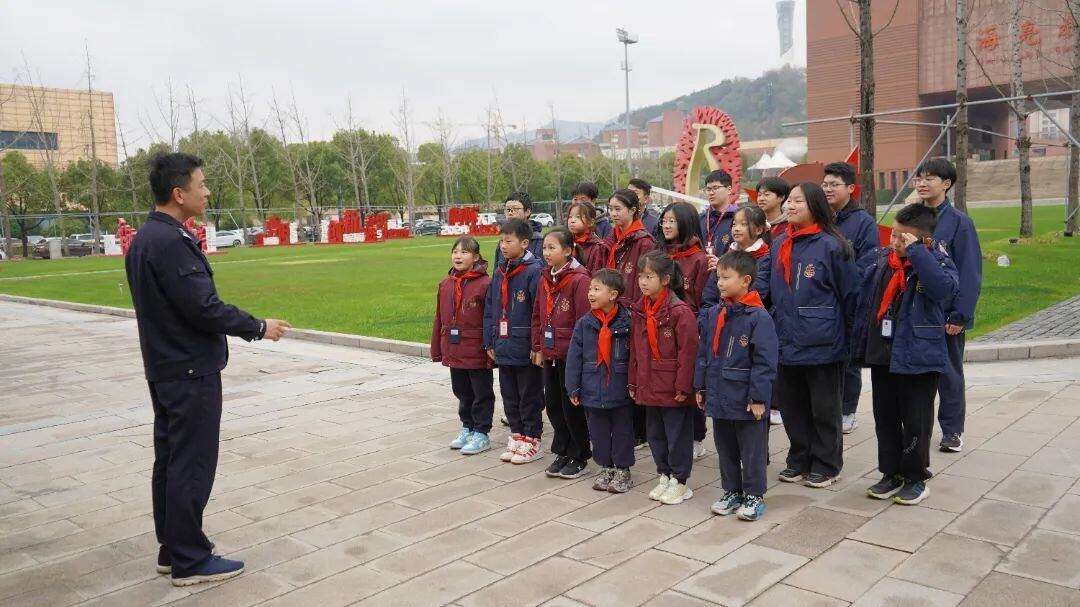 随后,在海亮教育园法制副校长蔡侃警官和陶朱派出所调解室主任詹悦明的带领下,学生们参观了校园110警务室。学生们近距离查看了防暴盾牌、钢叉等警用装备,参观了海亮移民事务服务站、校园矛盾调解中心,并与蔡侃警官积极互动,学习防诈骗知识。通过这次参观,学生们对警务工作有了更深入的了解,也提高了安全防范意识。